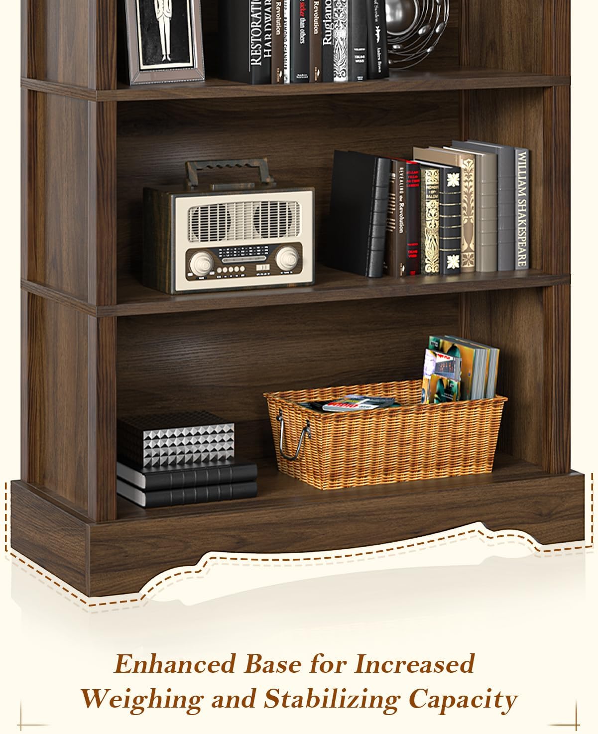 【Sturdy & Durable】This bookshelf is made of high-quality New Zealand pine and premium medium-density fiberboard (MDF), ensuring sturdiness and durability. Meanwhile, the elegant drapery-style base not only enhances aesthetic appeal but also boosts the product’s stability and weight capacity. Each tier of this product can hold up to 50 LBS, with a total weight capacity of 250 LBS, allowing you to safely place heavy items.