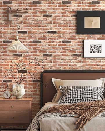 Size and Material: Each roll of red brick wallpaper is 17.3 inch/44cm wide, 78.8 inch/2m long, with an area of 9.5 square feet. It is made of PVC material that is waterproof and protects furniture or walls