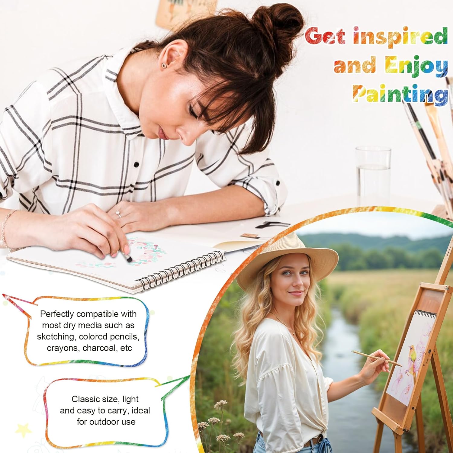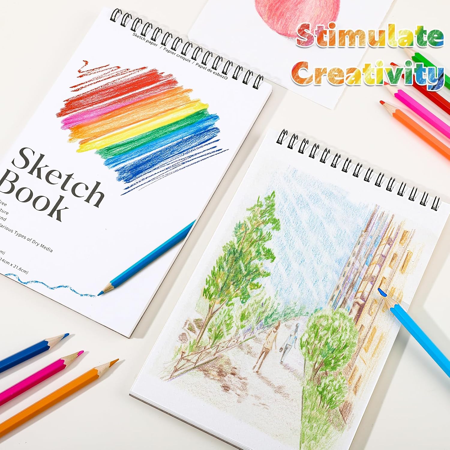 【Dry Media Mastery】Sketchbook for drawing supports more than 10 dry tools: colored pencils, crayons, charcoal, and more. Micro-textured 68lb paper improves line accuracy – perfect for detailed illustrations or kids’ doodle journals