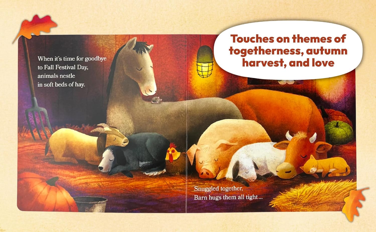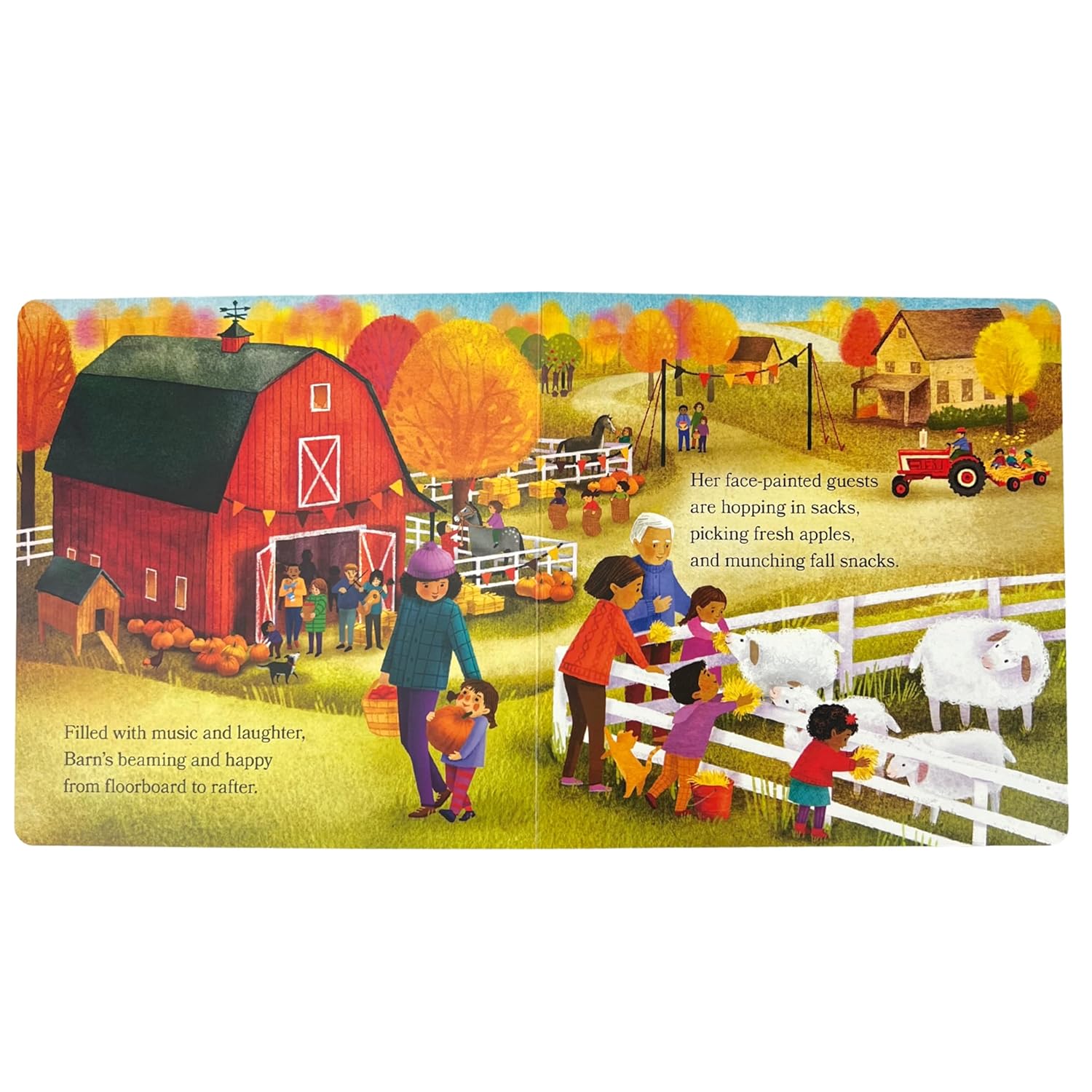 Autumn has come to the farm, and Barn is opening her doors to young guests for a who choose pumpkins, pick apples, ride hayrides, and show lots of love to all the farm animals. Celebrate autumn with this beautiful keepsake book that any farm-loving toddler is sure to love! Lyrically written in rhyming verse with gorgeously rich illustrations.