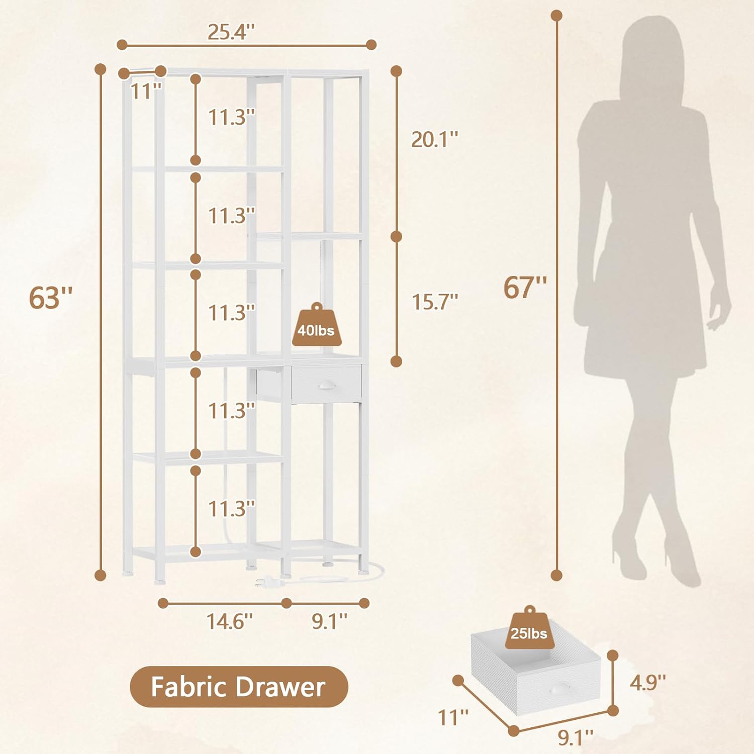[Easy Assembly & Support]: Bookshelves overall dimension is 11″D x 25.6″W x 63″H.The standing shelf are packaged with step-by-step illustrated instructions and necessary accessories, We provides customer service before and after purchase. If you have any questions, please feel free to contact us.
