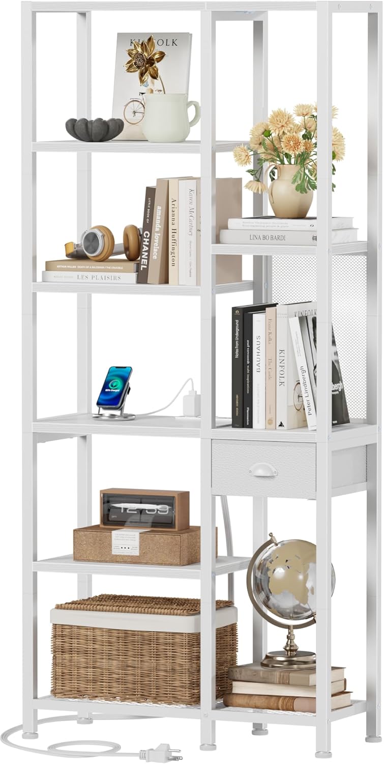 [Built-in Outlets and USB Ports]: The book shelf has 2 USB ports, 2 power outlets, and a 6.5ft power cord, which can charge your phone, table lamp and game console easily,providing great convenience for your work and study life.