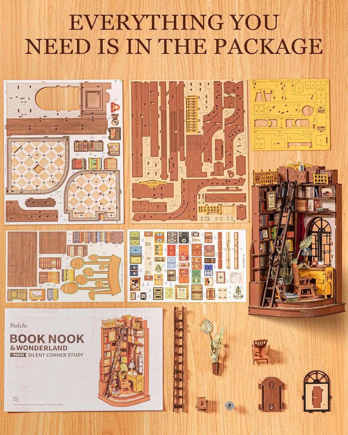 🏡 BOOK COLLECTIES: This DIY kit allows you to craft a tiny, charming study corner, complete with miniature furniture and accessories. Each piece fits together perfectly to create a beautifully detailed scene that book lovers will adore.