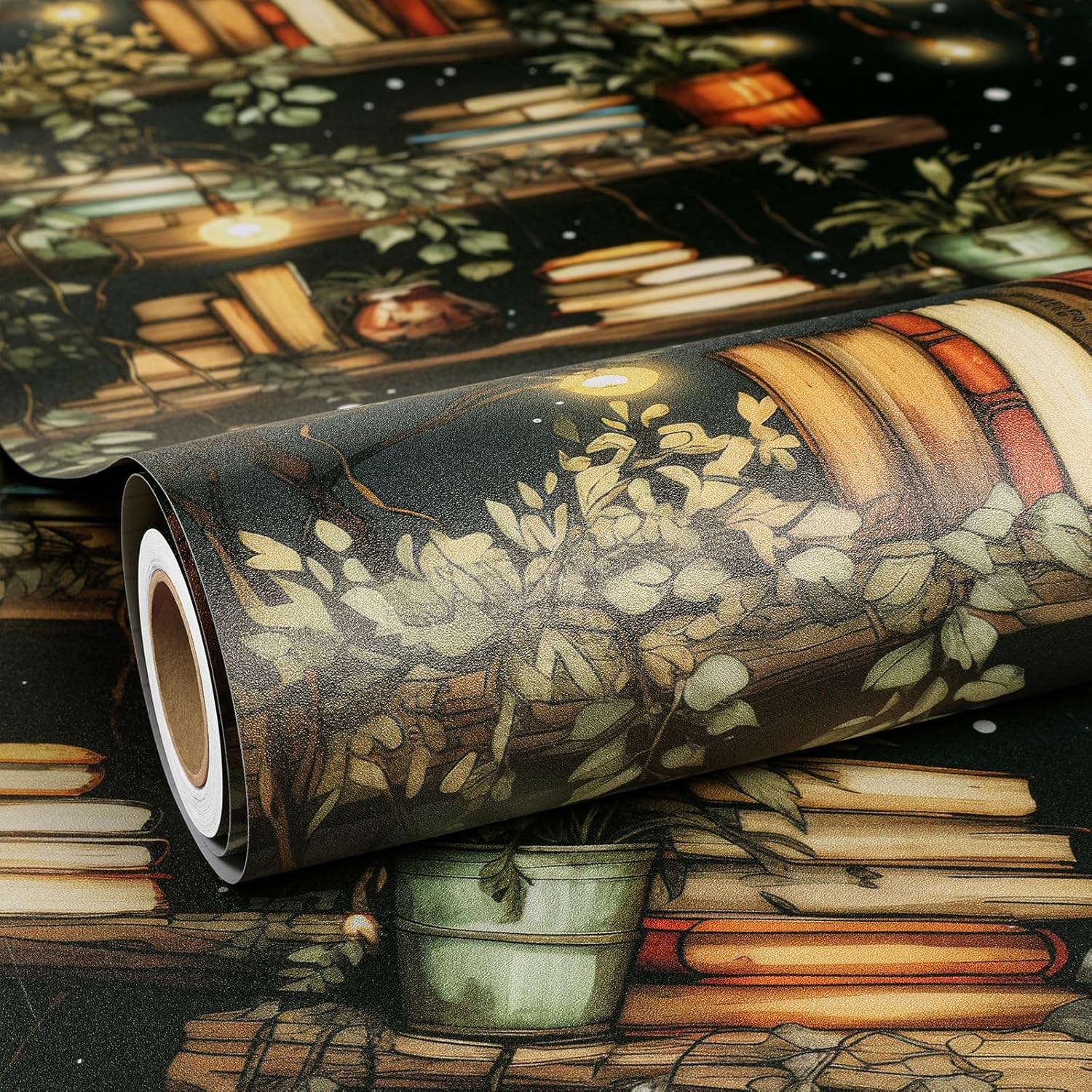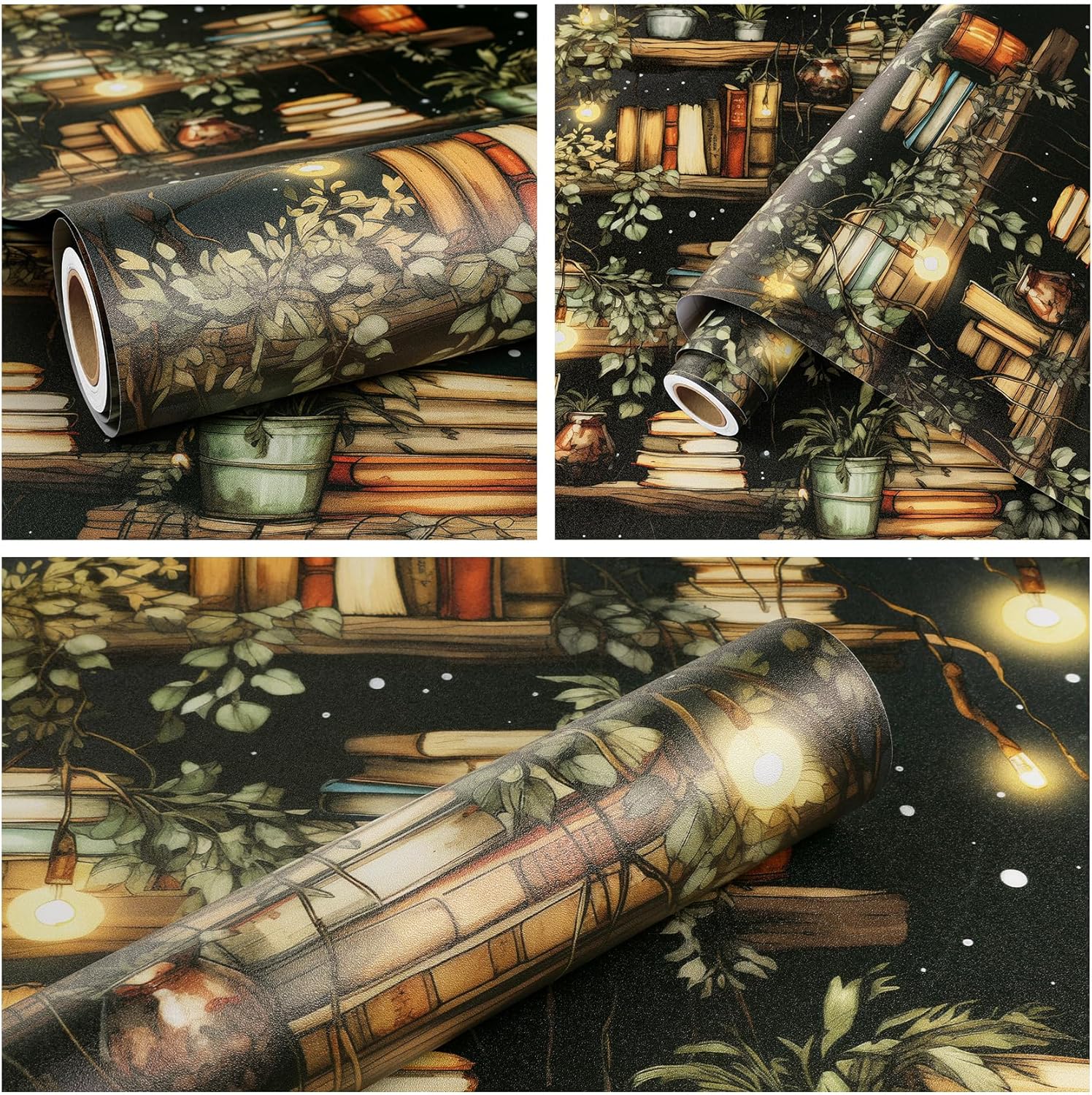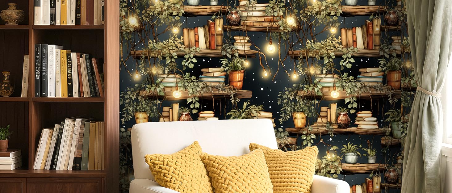 đ ăSelf Adhesvie Wallpaperăâ Instantly transform your blank wall into a cozy home library with our ultra-realistic bookshelf mural. Featuring vintage books, soft lighting, and green plants, this stick on wallpaper creates an immersive reading nook vibe without the cost of built-ins