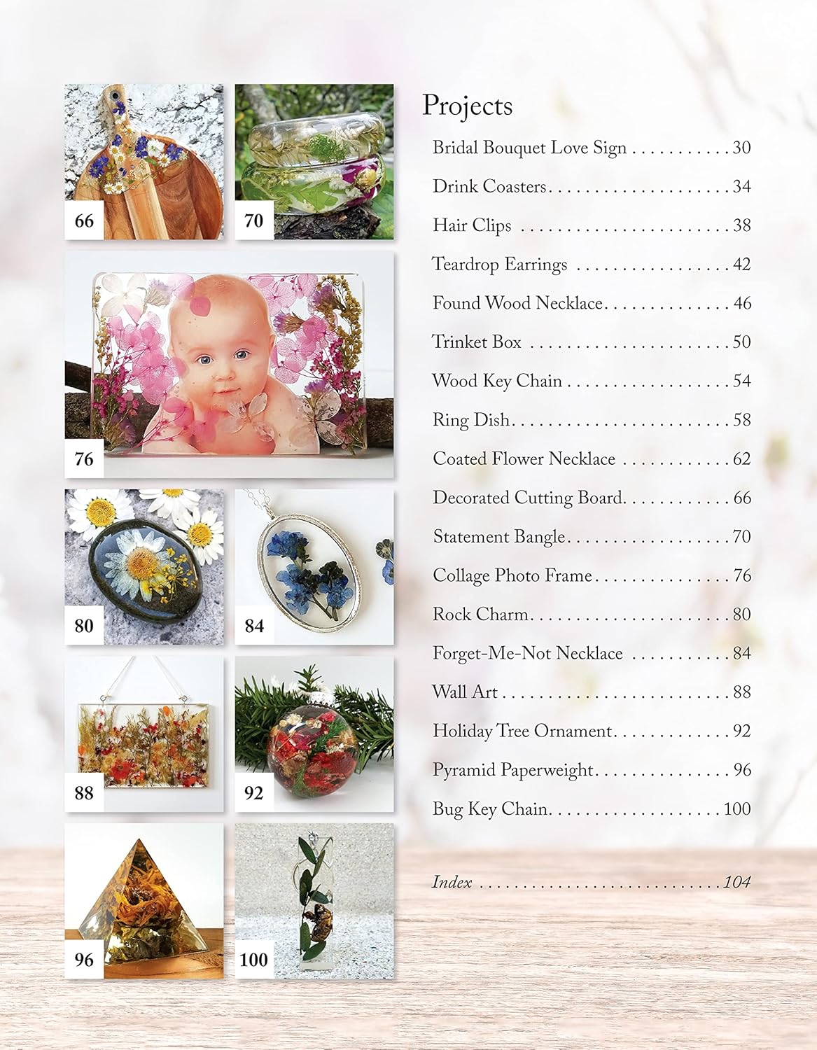18 fun projects to make a variety of resin crafts and keepsakes from memorable moments, places, events, walks, and hikesPreserve flowers, feathers, four-leaf clovers, insects, shells, and other objects, in clear resinBeginner-friendly techniques, step-by-step photo-illustrated instructions, tools and materials lists, must-know do’s and don’ts, and expert tipsMake resin jewelry, wood coasters, paperweights, photo frames, cutting boards, and more from your prom corsage, wedding bouquet, or other important eventUse affordable materials, safe and easy to locate, along with items you’ve found in nature, to create personalized gifts for friends and family
