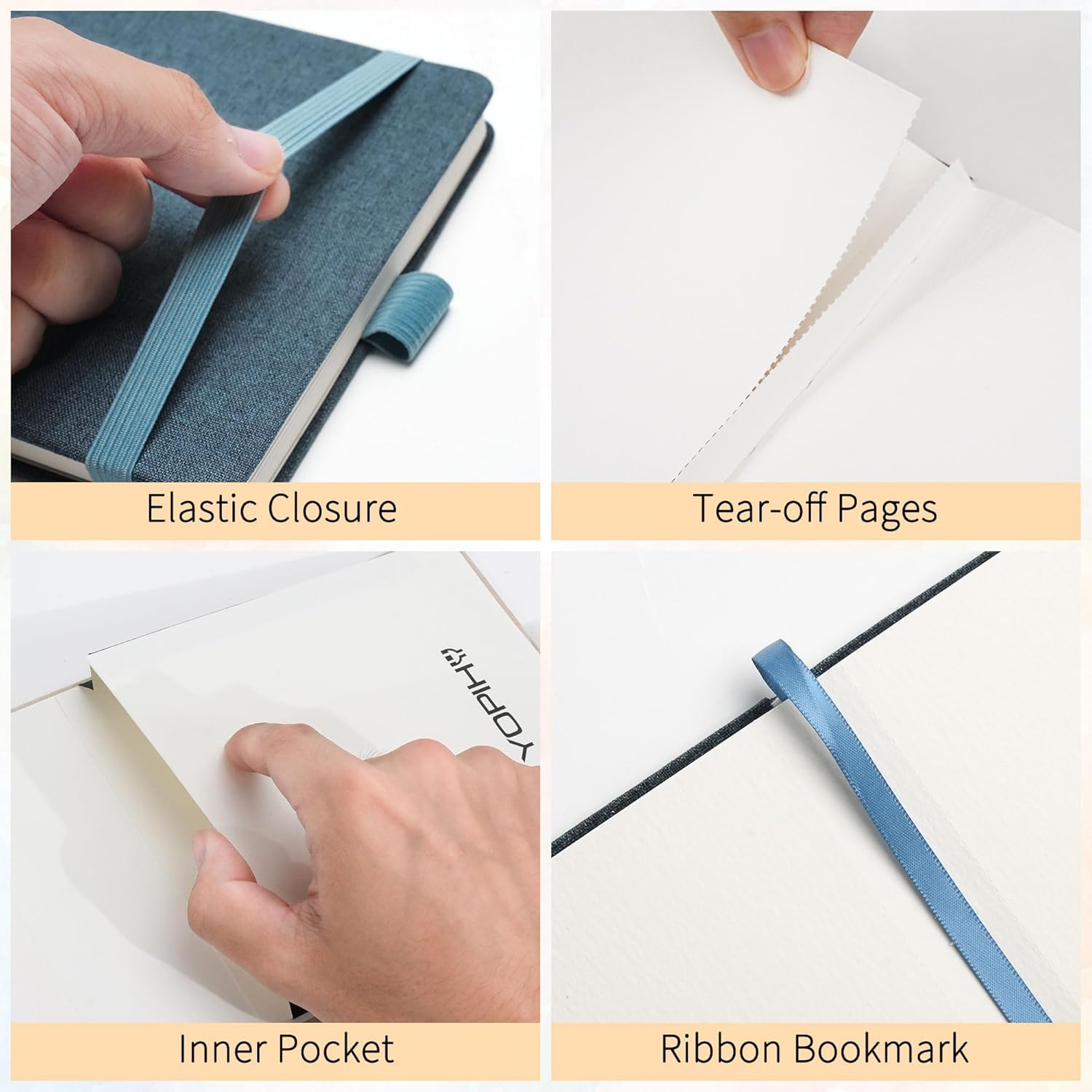 Durable & Portable Design: Features a high-quality linen cover with an elastic closure to keep pages secure and an inner pocket for storing sketches, notes, or small tools on the go