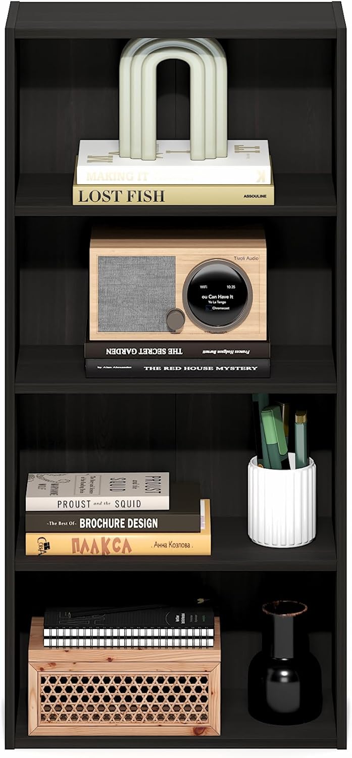 The Furinno Basic 4-Tier Open Shelf Bookcase is a functional and versatile bookshelf, storage organizer, and display shelf designed to keep your home or office tidy and stylish. Featuring durable engineered wood and open shelving, this compact bookcase is ideal for storing books, décor, plants, baskets, and other essentials in living rooms, bedrooms, home offices, dorm rooms, or apartments. With multiple size options and a space-saving design, this bookshelf fits perfectly in small spaces while adding practical storage and modern style to any room. The Bookcase is made of CARB-grade composite wood tested for durability and sturdiness. Assembly is easy with provided step-by-step instructions. Care instructions: wipe clean with a clean damped cloth. Avoid using harsh chemicals. Pictures are for illustration purposes. All decor items are not included in this offer. The product is entitled to a 1-year warranty against manufacturer defects. Fits Space, Fits Budget.