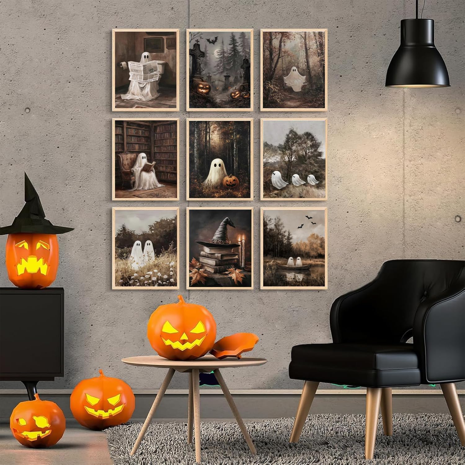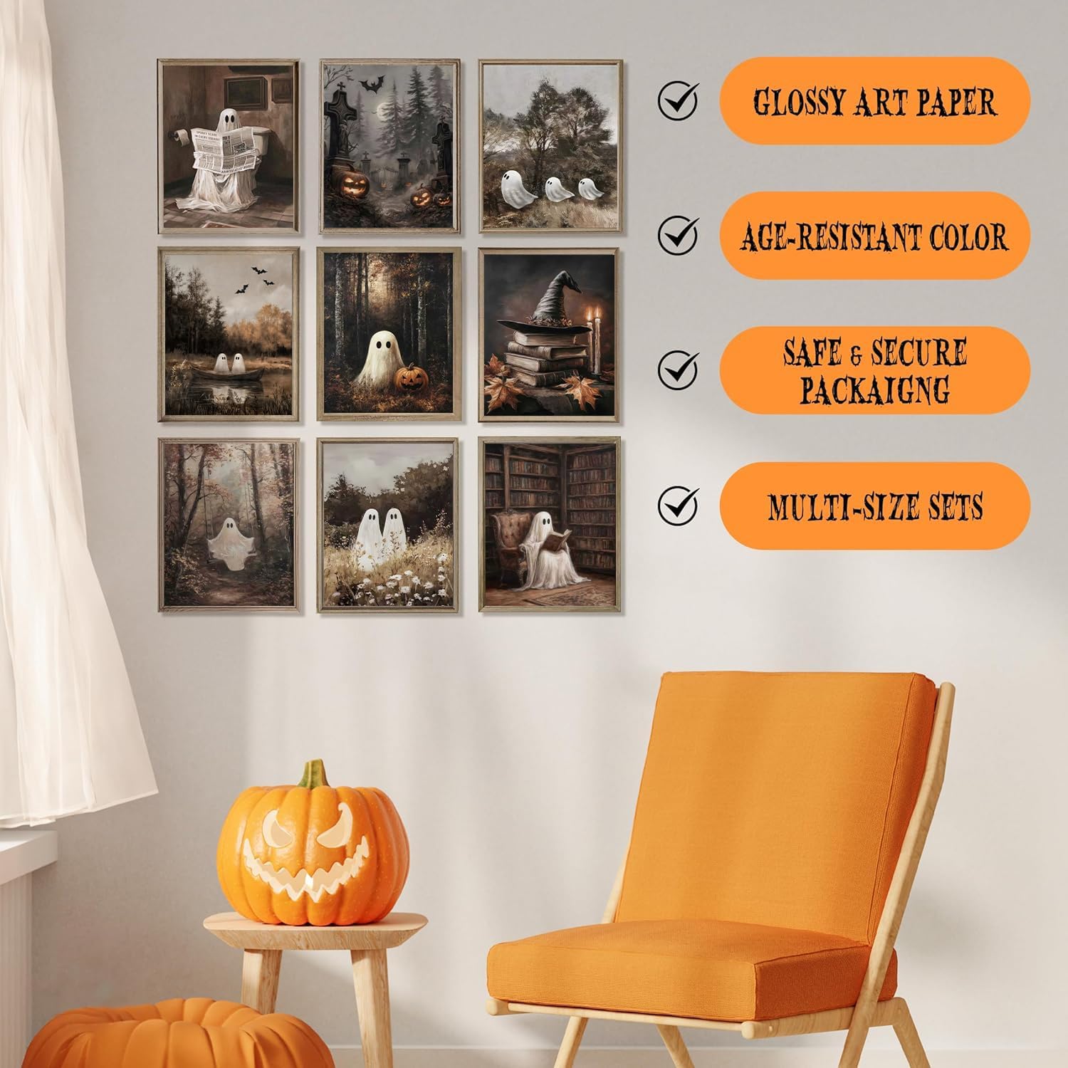 Adorable Vintage Ghost Posters: Add a charming touch to your Halloween decor with this set of 9 unframed 8×10-inch vintage ghost posters. Perfect for creating a cute yet spooky atmosphere in any room