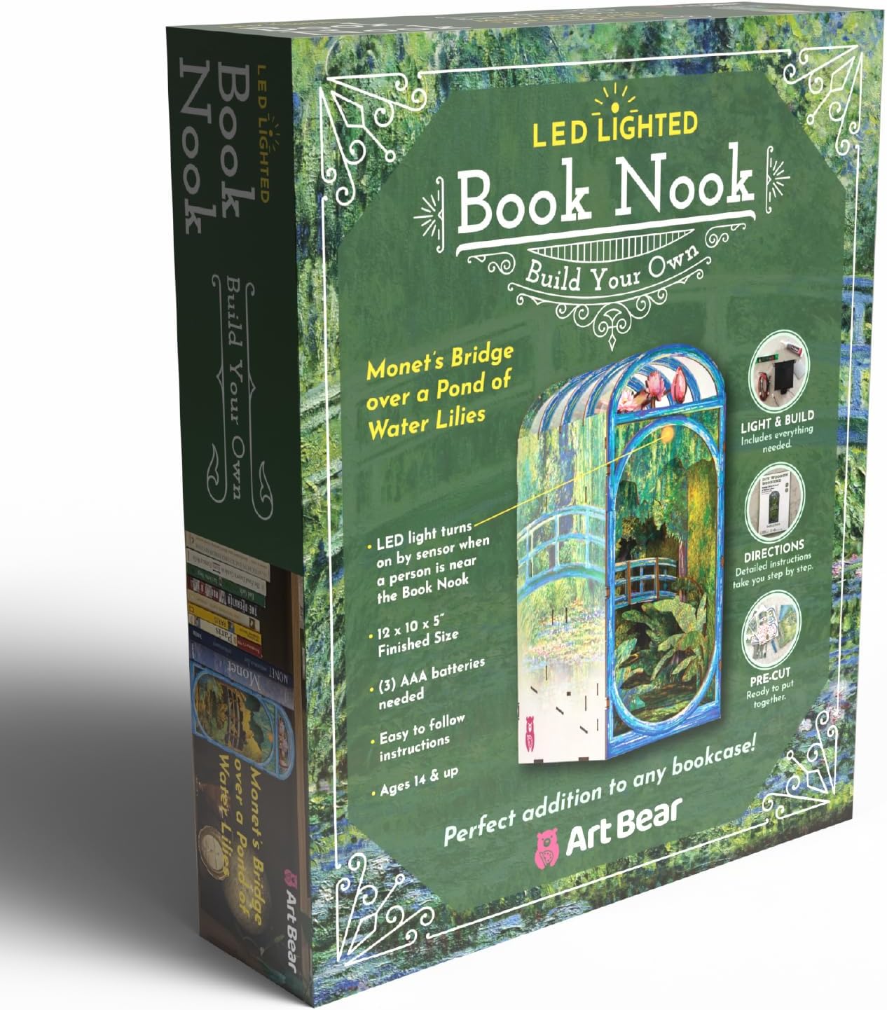 A gorgeous booknook kit to add to any home library. This DIY book nook will bring a miniature world of culture to any room or shelf. Gaze at one of the worlds most famous paintings come to life on your book shelf as you relax or drift off to sleep.