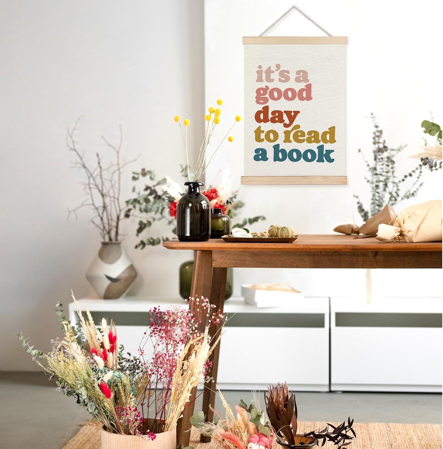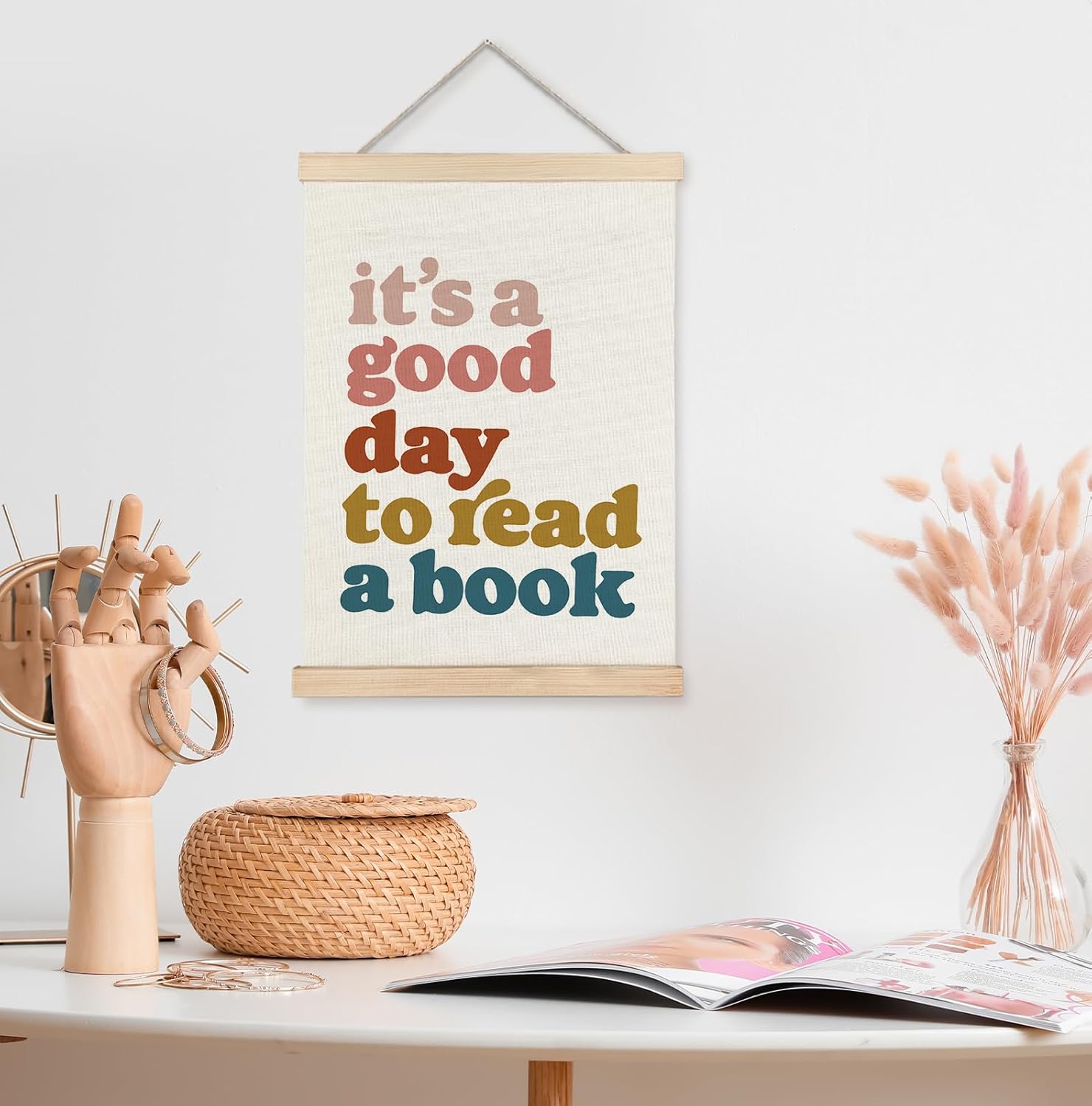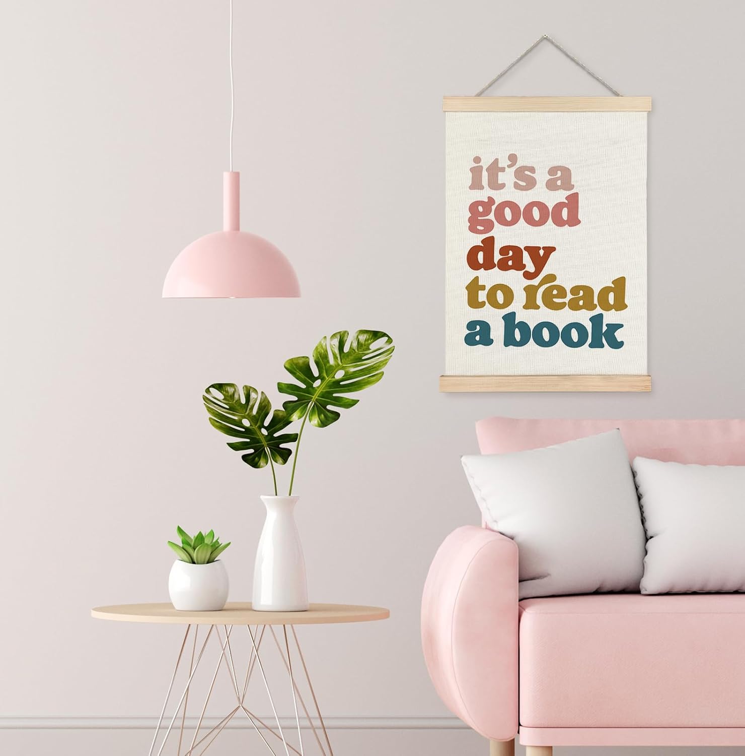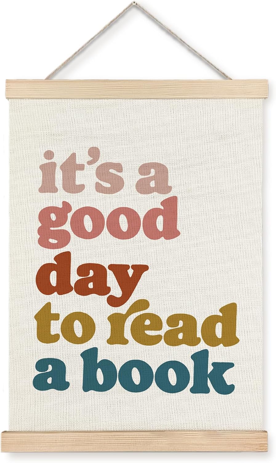 Yomisex Book Reading Wall Art Poster, Reading Nook Corner Decor, Library Decor, It’s a Good Day to Read a Book Bookish Canvas Prints Wall Art Framed for Classroom Home Decor, 12×16 Inch