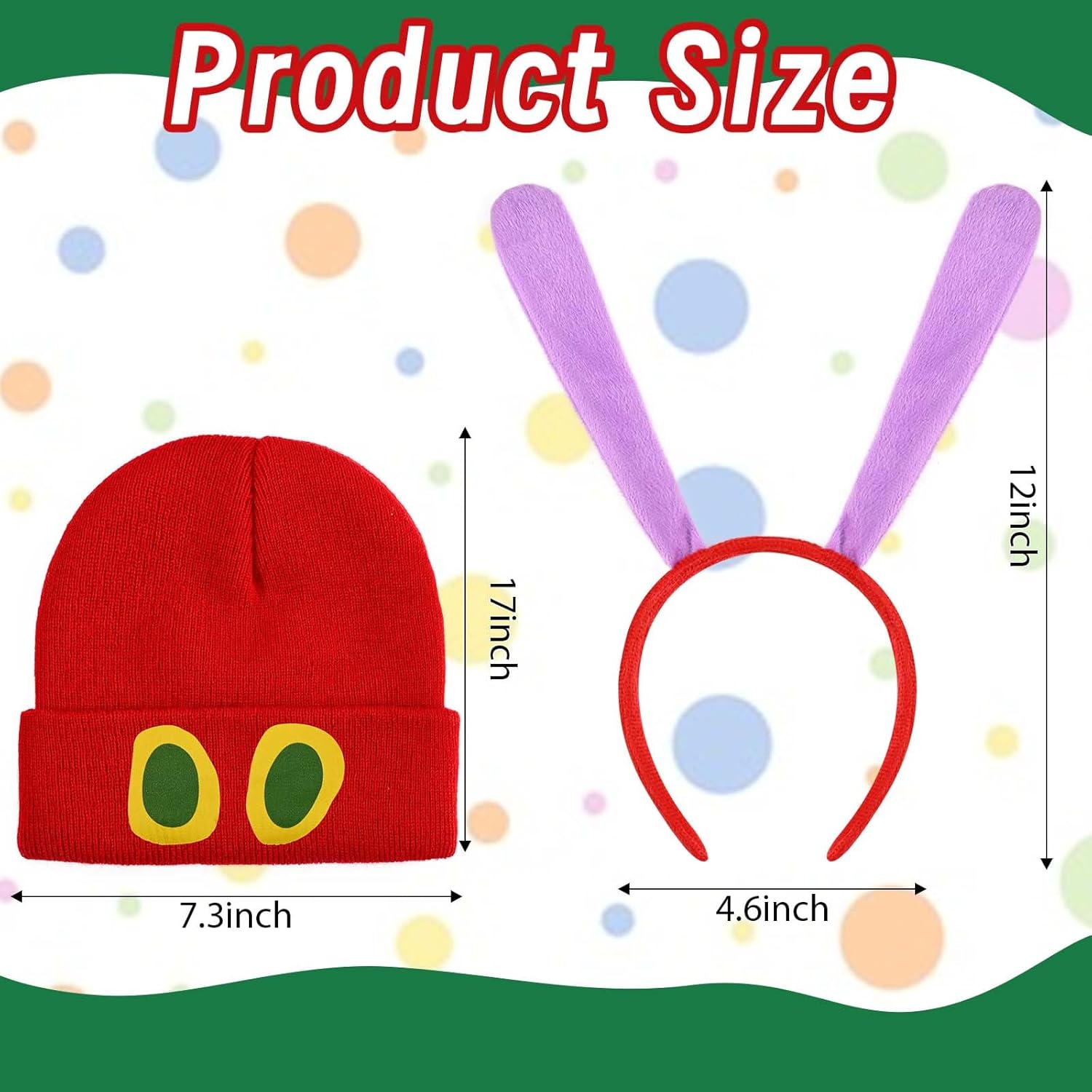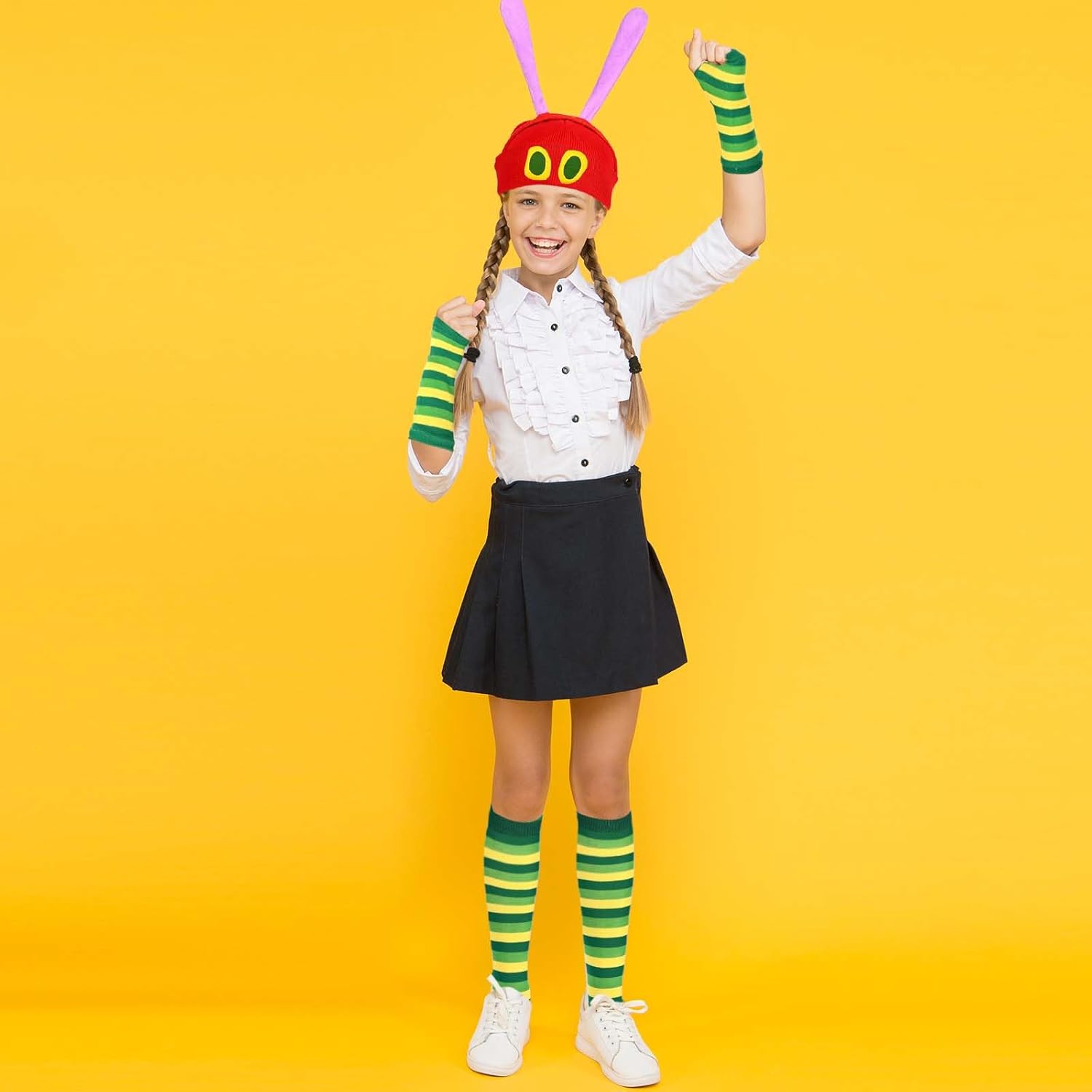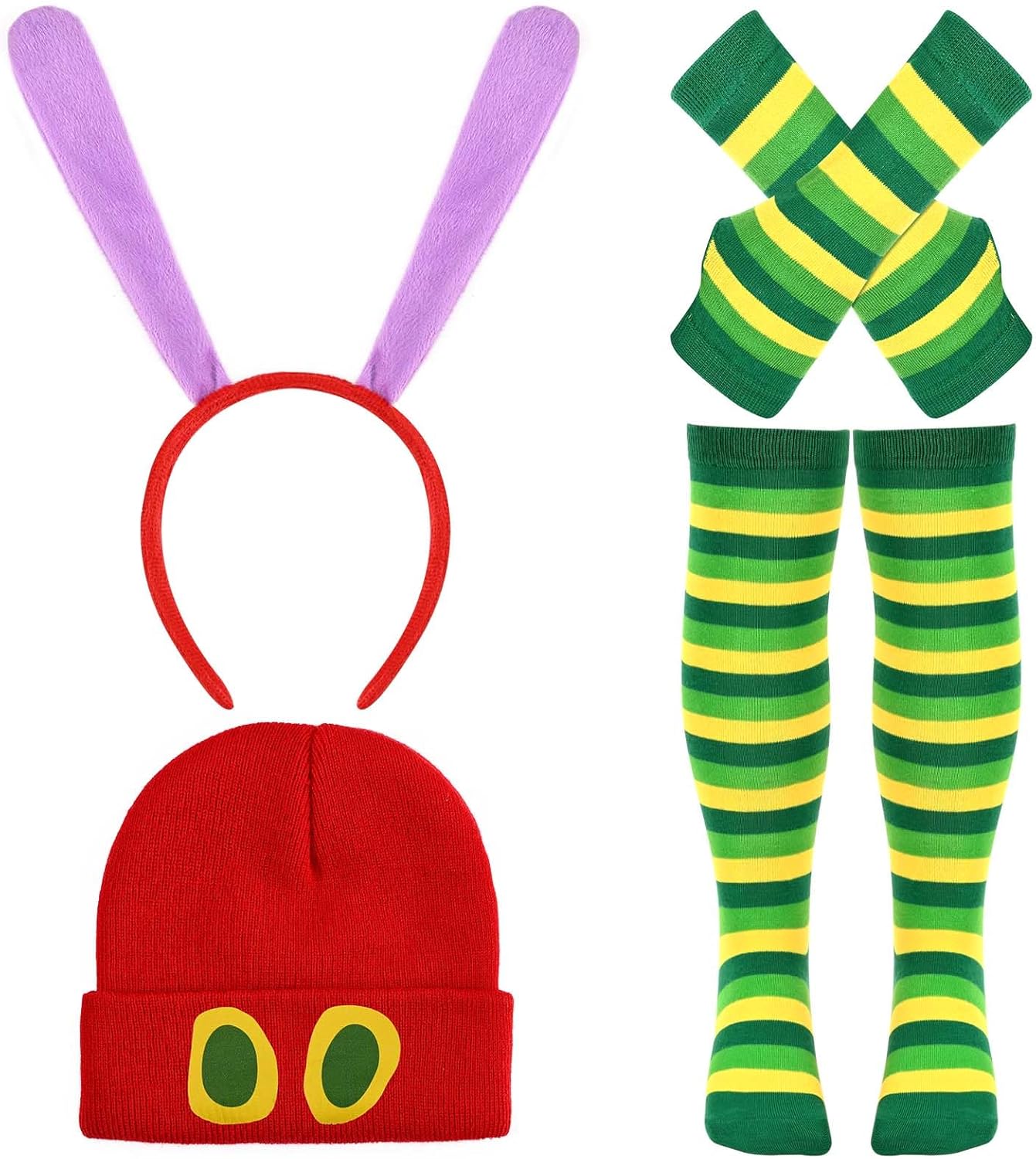 4 Pcs Halloween Caterpillar Costume Accessory Book Character Cosplay Red Knitted Beanie Hat Headband Socks Gloves for Halloween Cosplay Party