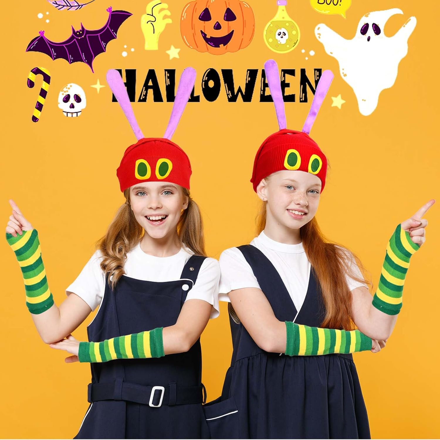 Caterpillar Costume Kit for Halloween Include Red Knitted Beanie Hat with Eye Headband Gloves and Socks for Halloween Cosplay