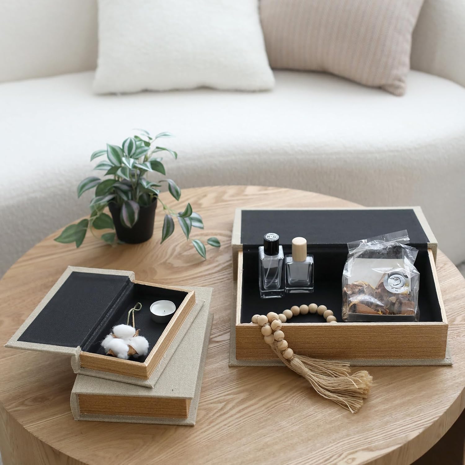 Modern Style: Add a touch of contemporary elegance to your home decor with the DECOR4SEASON Modern Book Box Set. These faux linen and wooden decorative boxes exude a modern aesthetic that complements any interior design.