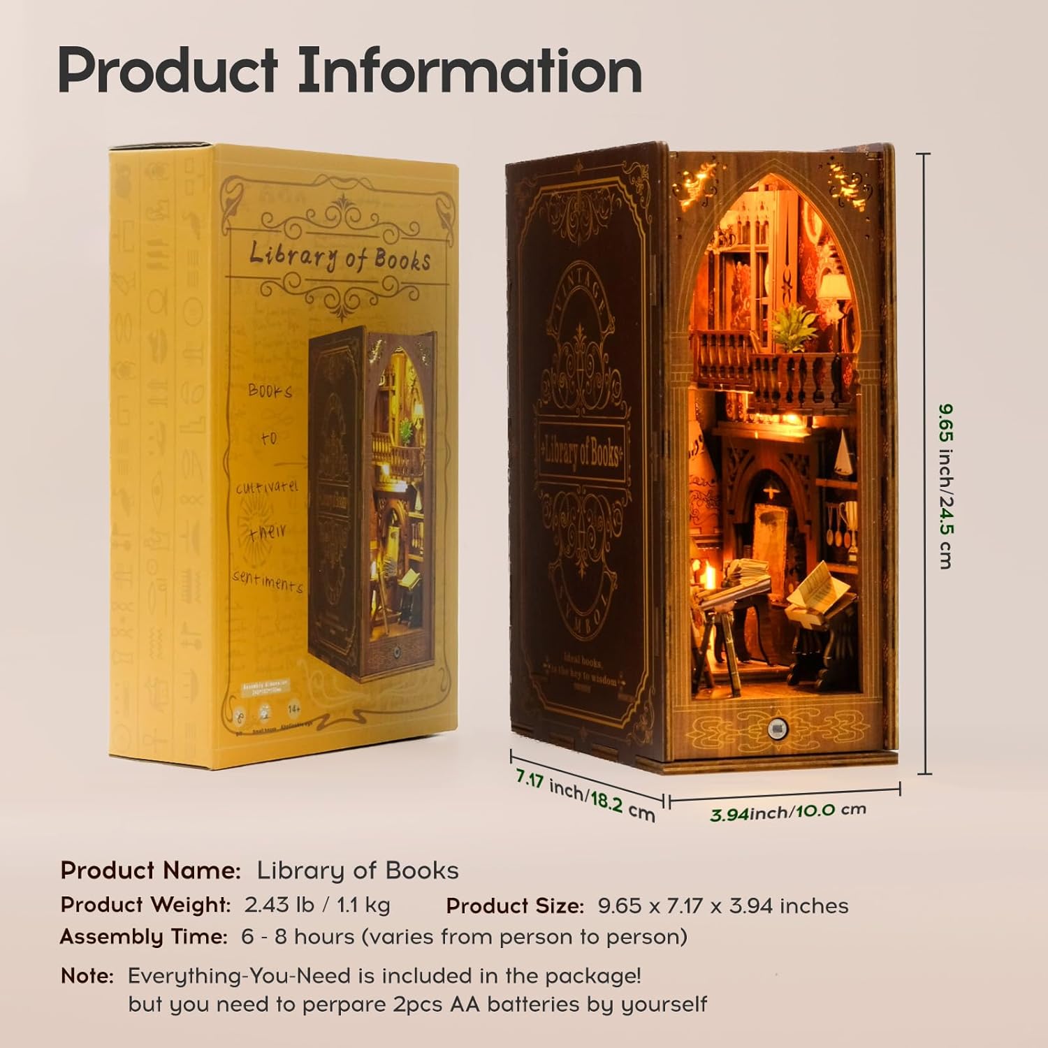DIY CREATIVE FUN: Experience the joy of creativity with our book nook kit! Ideal for beginners and seasoned crafters, this 3D wooden book nook kit is easy and fun to assemble with a step-by-step illustrated manual. Suitable for ages 14 and up. Whether alone or with friends and family, create a unique, handmade work of art that will impress and enhance any space!