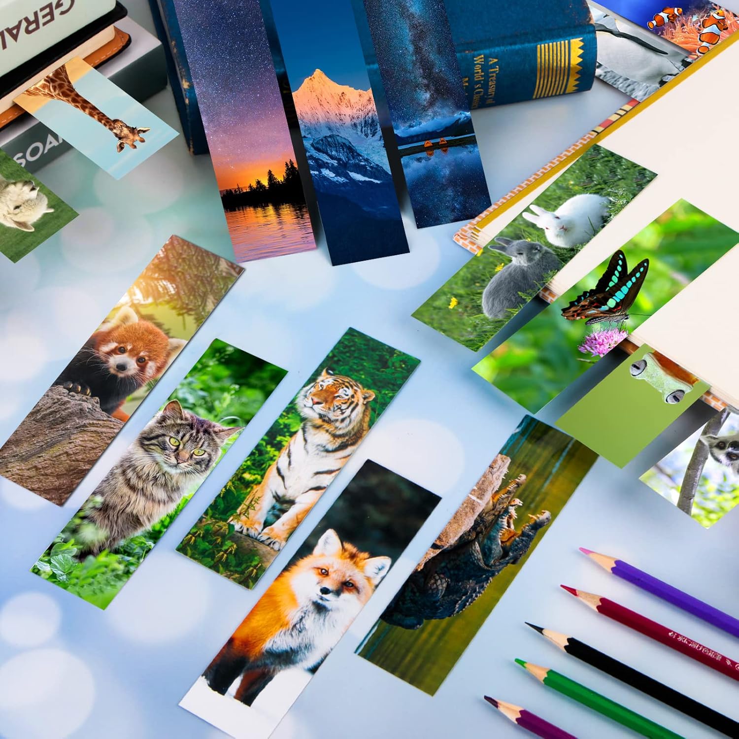 Customers love these bookmarks for their beautiful animal pictures and nice quality, particularly appreciating their use in classrooms and school libraries. Customers praise the tremendous variety, with one customer noting there are 300 bookmarks included, and they find them to be a great value. Customers like the animal content, with one mentioning they feature many different animals from land, and they find them fun for kids. While customers appreciate the image quality, they note the bookmarks are not the most sturdy.
