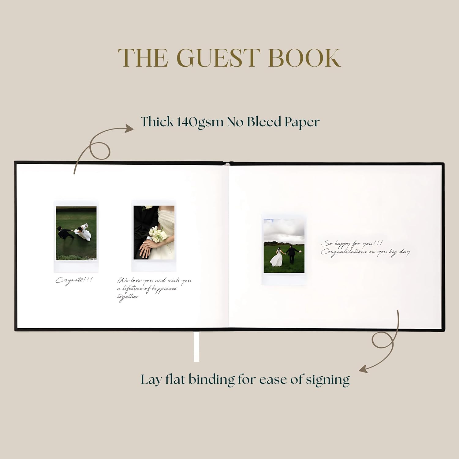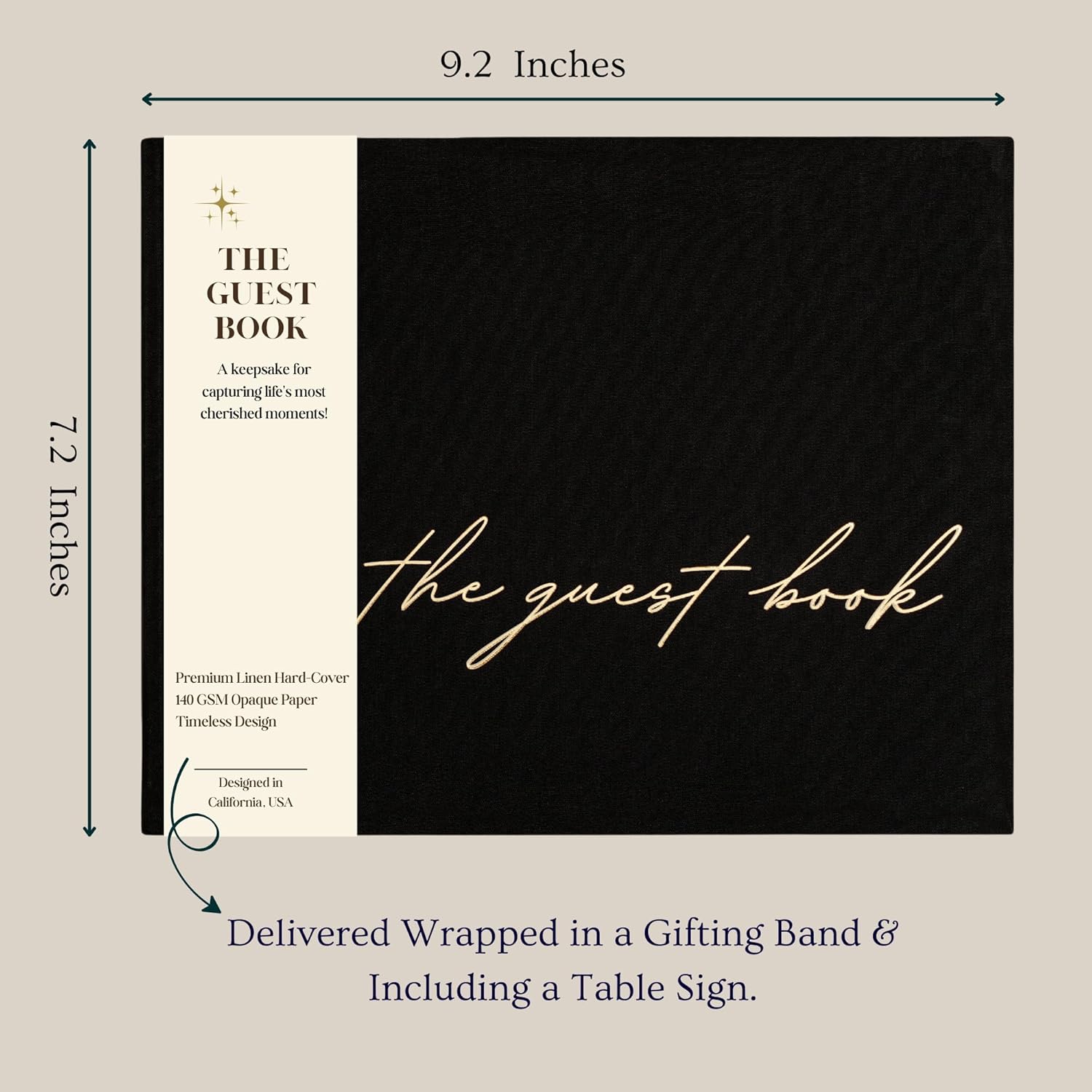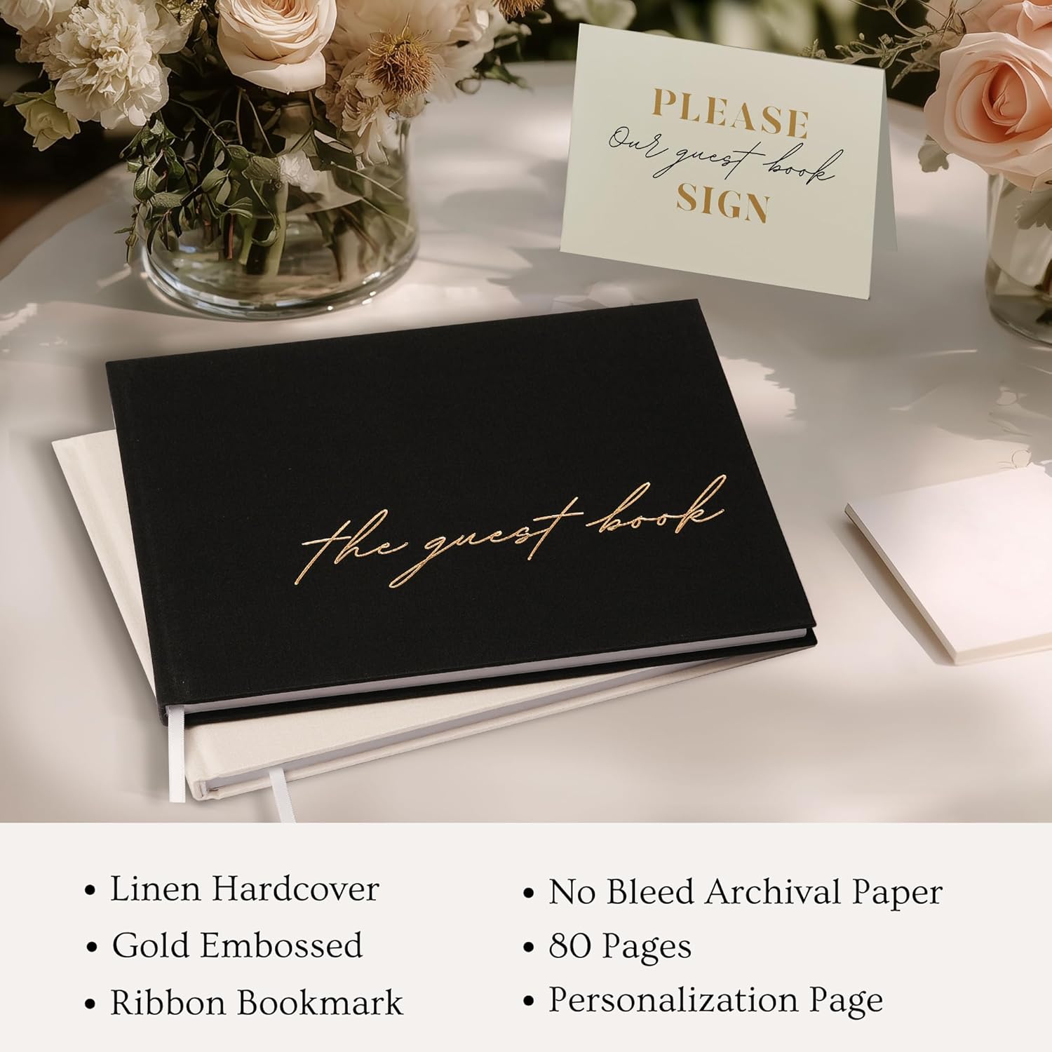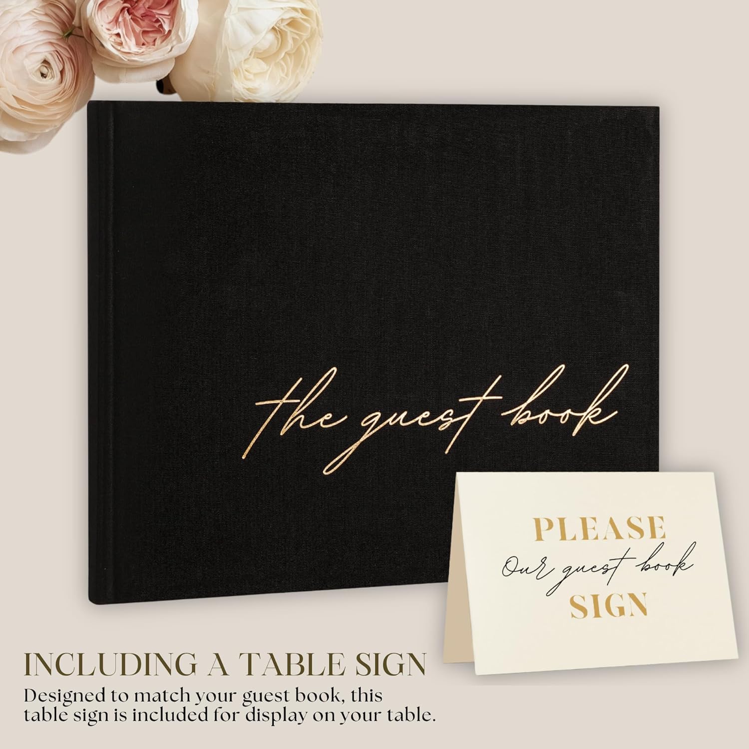 Wedding Guest Book – Guest Book for Wedding Reception with Linen Hardcover & Gold Foil Embossing – Unlined, No-Bleed Pages – Perfect Keepsake for Sign-Ins & Polaroids – Black