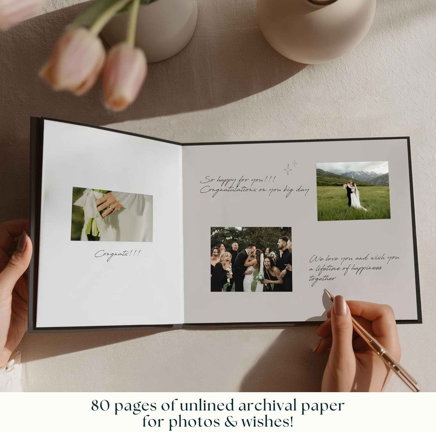 Perfect Size & Premium Paper Quality – Measuring 9.2 x 7.2 Inches, this guest book includes 80 pages of premium 140 GSM thick archival paper. Unlined pages provide plenty of room for Polaroids & handwritten notes without any bleed-through.