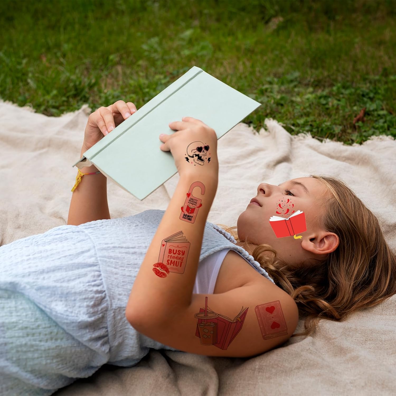 Safe and Skin-friendly: These reading book temporary tattoo stickers are made of skin-safe materials, gentle on delicate skin, beautiful patterns, safe for children, adults and teenagers, can be firmly fixed where you want, and ensure that they can be easily removed when needed
