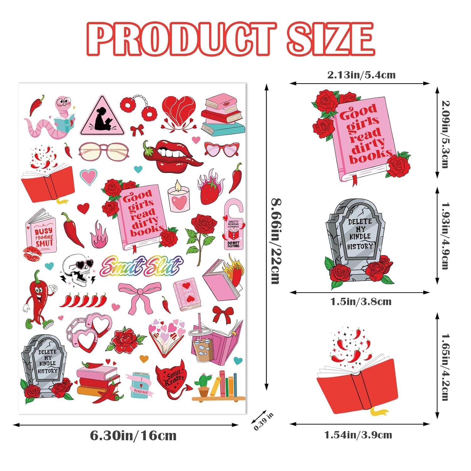 Spicy Pattern Design: Spicy reading theme tattoo stickers use a variety of pattern designs including books, flames, hearts, glasses, peppers, skulls, roses, etc., which perfectly combine the love of books and spicy elements, showing a distinctive book lover style