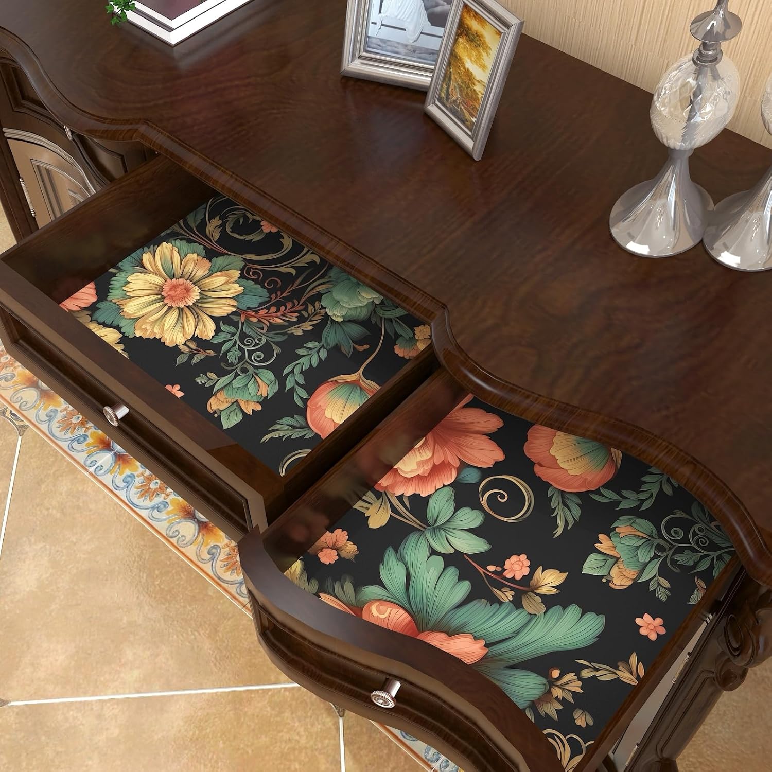 [PATTERN DESIGN] The boho contact paper is composed of patterns flowers and leaves. Bold color combinations and vintage floral wallpaper are the good choice for decorating homes.