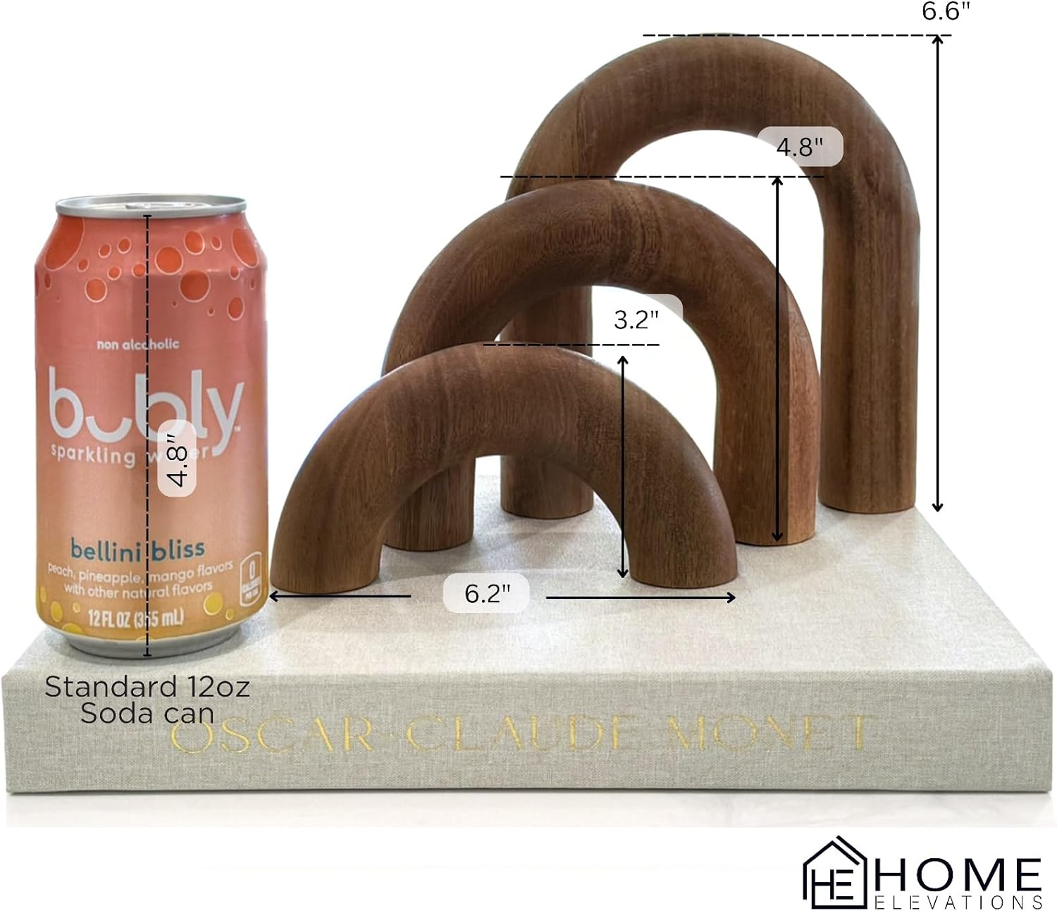 Wooden Arch Decor Set of 3 – Shelf Decor Aesthetic for Coffee Tables, Bookshelves, & Entryways – Acacia Wood Japandi Home Decor Accents – Modern Decorative Objects