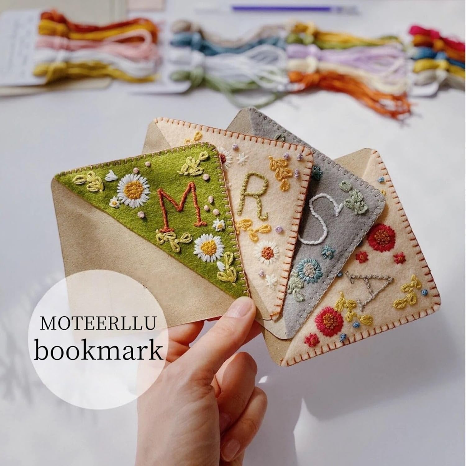 MOTEERLLU Personalized Hand Embroidered Corner Bookmark,Felt Triangle Page Stitched Handmade Bookmark,Unique Cute Flower Letter Embroidery Bookmarks Accessories for Book Lovers