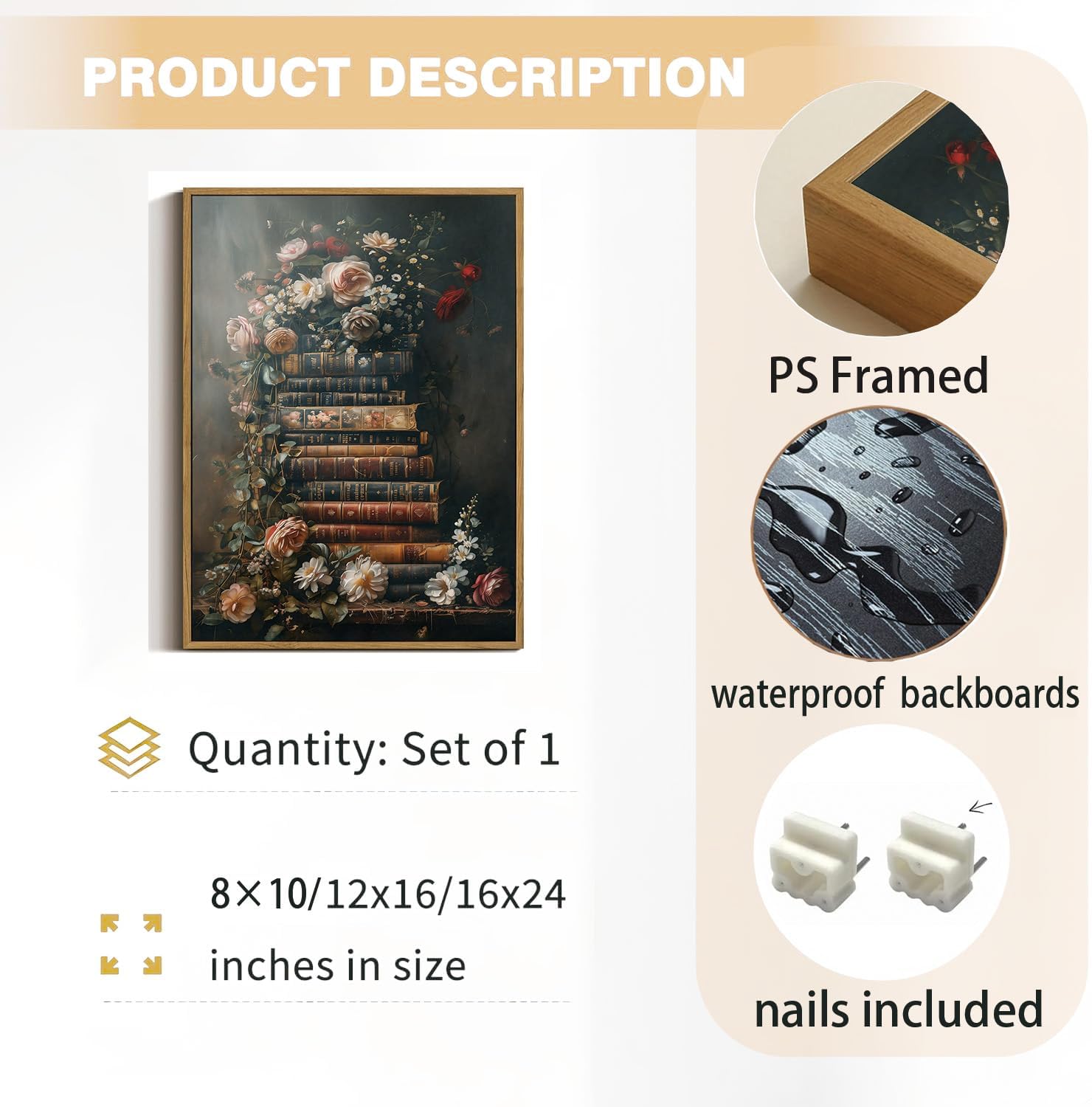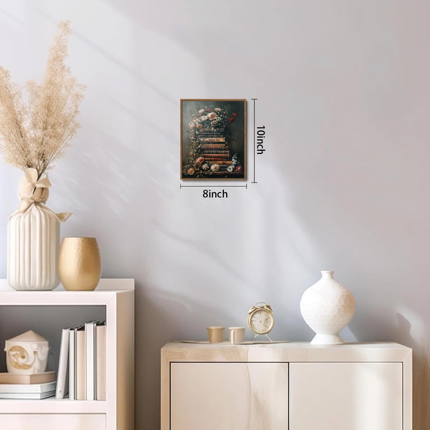 Vintage Framed Wall Art: The floral wall art canvas prints blend antique charm with literary flair, featuring blooms entwined around old books. Perfect for adding a touch of retro, artistic elegance to living rooms, studies, or any area craving a nostalgic, literary vibe.