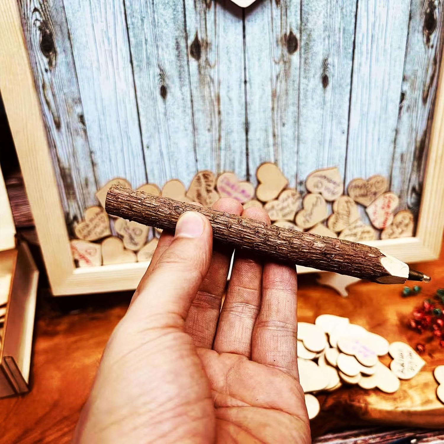 PACKAGE :Frame Set +120 Blank Wooden Hearts(that can write name and wishes on)+Wooden Stand + Wooden Pen + Small Wood Box for Hearts