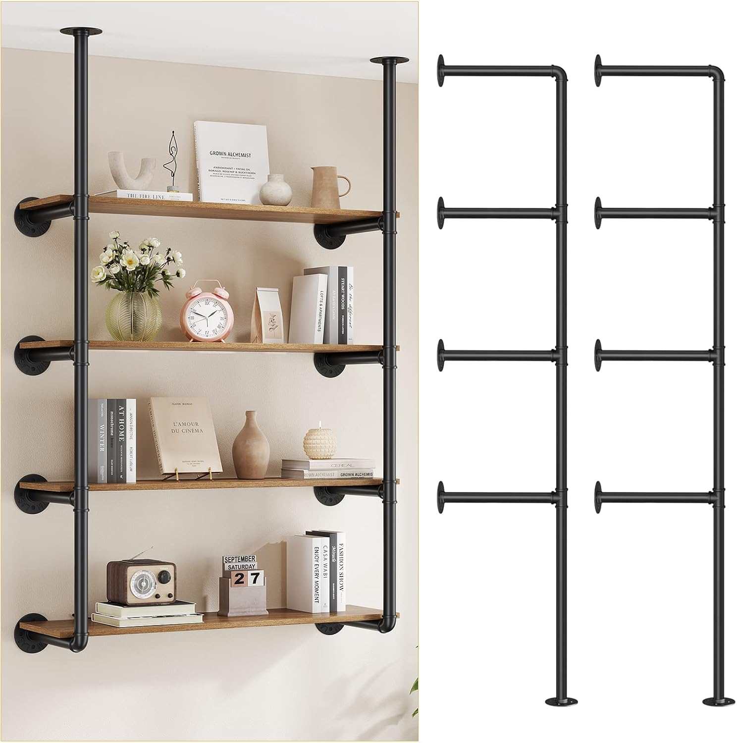 INSTALL TYPE: Pipe rustic shelves for wall can be suspended ceiling, also be standing the floor, you can decide the type of installation as you like.