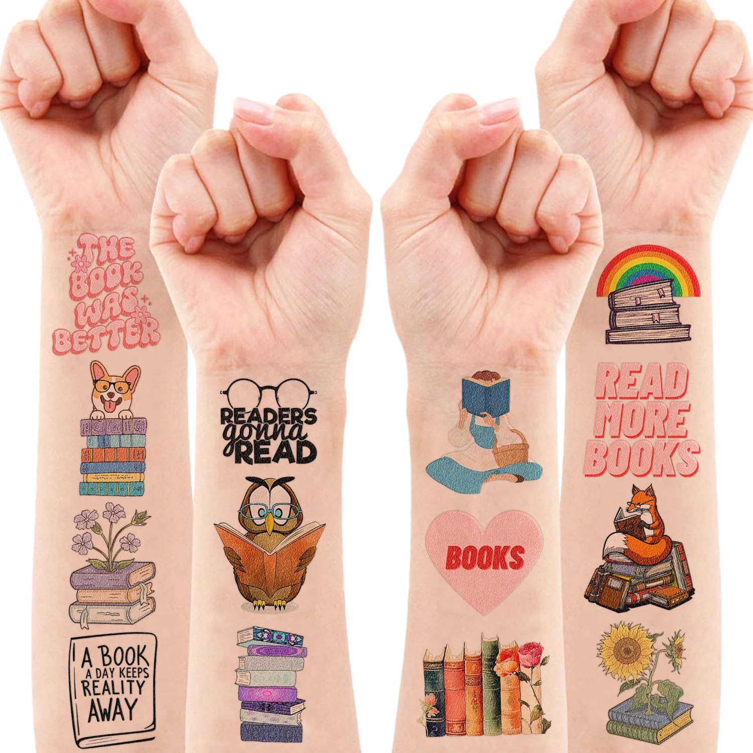Customers find these temporary tattoos perfect for reading club activities, with one mentioning they’re great for book club events. The tattoos last a while, with one customer noting that the colors stay bright.