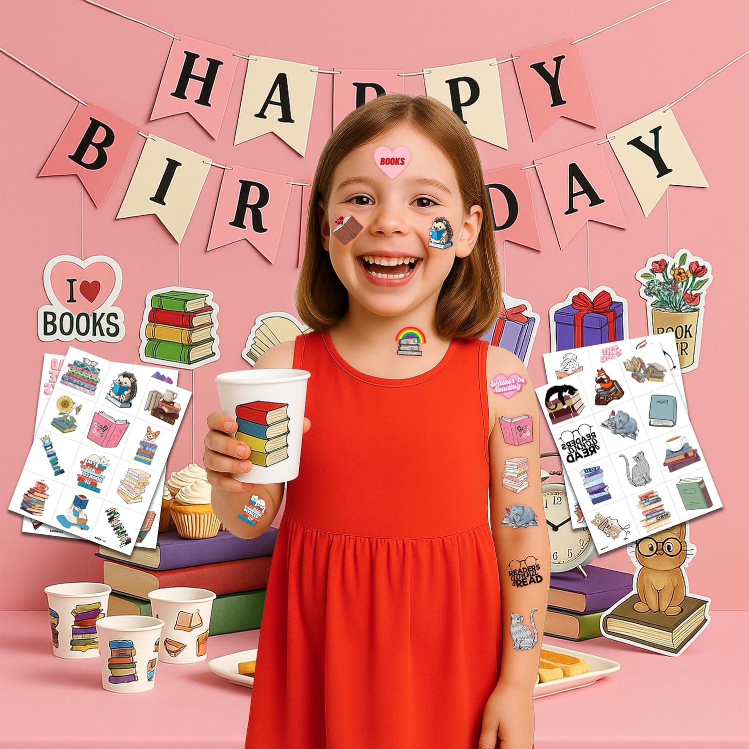 📚 FUN GIFT FOR BOOK BIRTHDAY PARTY DECORATIONS SUPPLIES: BOOK TATTOOS for themed party, outdoor parties, birthday parties, school rewards and other party events. BOOK TATTOOS are also interesting and lovely gifts for your children. Complement your unique collection with a book tattoo!