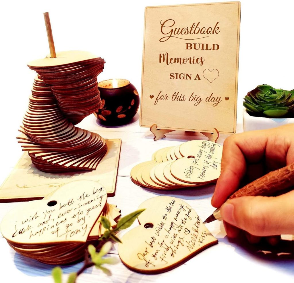 Wedding Guest Book Alternative Sign 72 Wood Hearts Guest Book Wedding Reception, Wedding Decorations Baby Shower 1st Birthday Party Decoration Baptism Rustic (Heart)