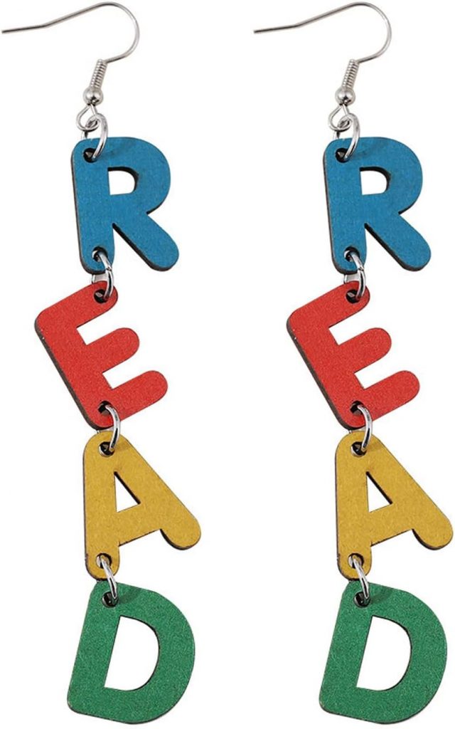 Personality Apple LOVE Pencil Books Dangle Drop Earrings Double Sided Wooden Teacher Student Earrings for Women Teachers Appreciation Day Gifts Graduation Back to School Jewelry